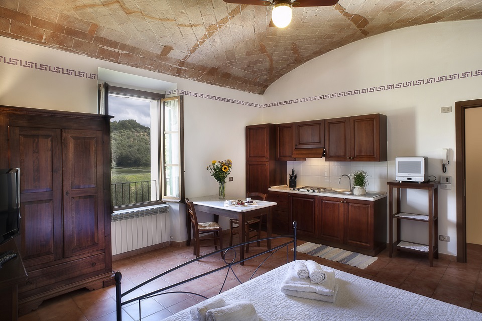 Pucciarella farm offers a beautiful and unique XVIII Century Castle with accommodations. You have the ability to stay in one of our 11 completely renovated rooms. The flats can accommodate from 2 to 6 people and are all furnished in a simple and functional way. Linens and towels are provided. Each flat has a kitchen, TV and free WiFi.